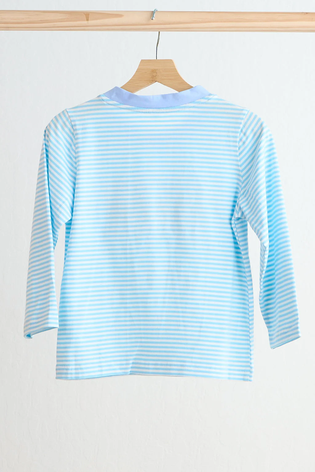 Get your little guy looking adorable in our Blue Puppy hand smocked boy stripe top! With playful puppy embroidery and charming hand smocking, this top will surely bring a smile to your face. Comfortable and stylish for all occasions. Woof woof!