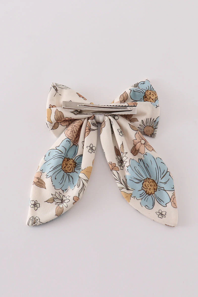 Add a touch of fun and charm to your hairstyle with this floral print hair bow. Perfect for any occasion, this accessory is sure to make you stand out and add a playful touch to your look. Get ready to receive compliments galore!
