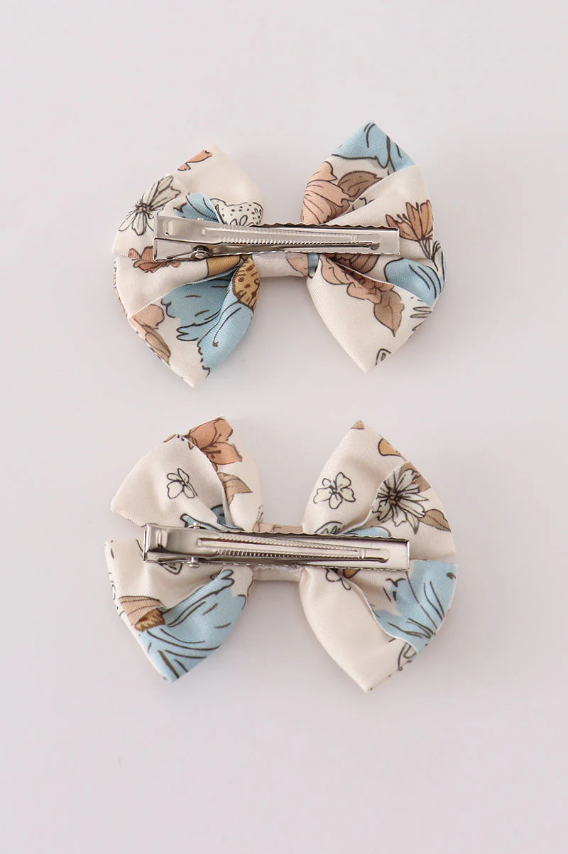 Add a pop of color to your hairstyle with this quirky floral print 2pc hair bow. Stand out from the crowd with this playful and fun accessory that is perfect for any occasion. (Hair ties not included.)